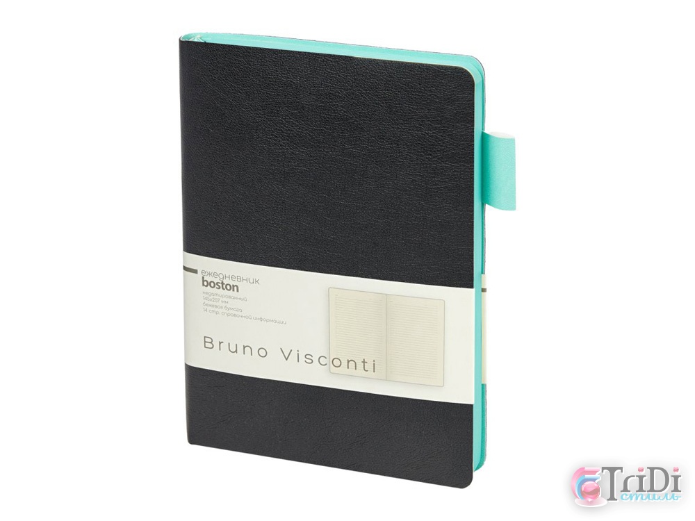 Ежедневник недатированный А5 Boston, черный (бирюзовый обрез)