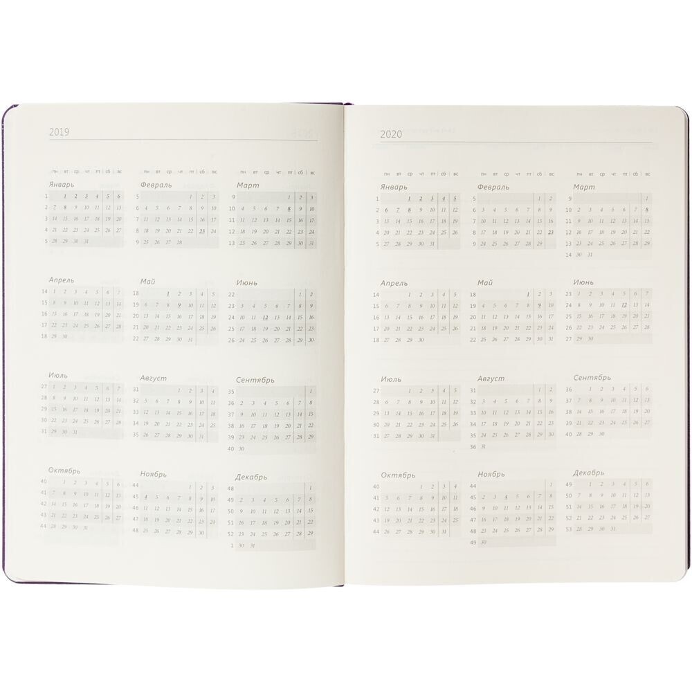 Ежедневник с твердой обложкой, выполнен из фактурного материала на синтетической основе.Блок: недатированный.Кол-во страниц — 256 (235 страниц — недатированный ежедневник,16 чистых страниц с перфорацией);Календарь на 4 года;Ляссе сиреневого цвета;Тонированная бумага.