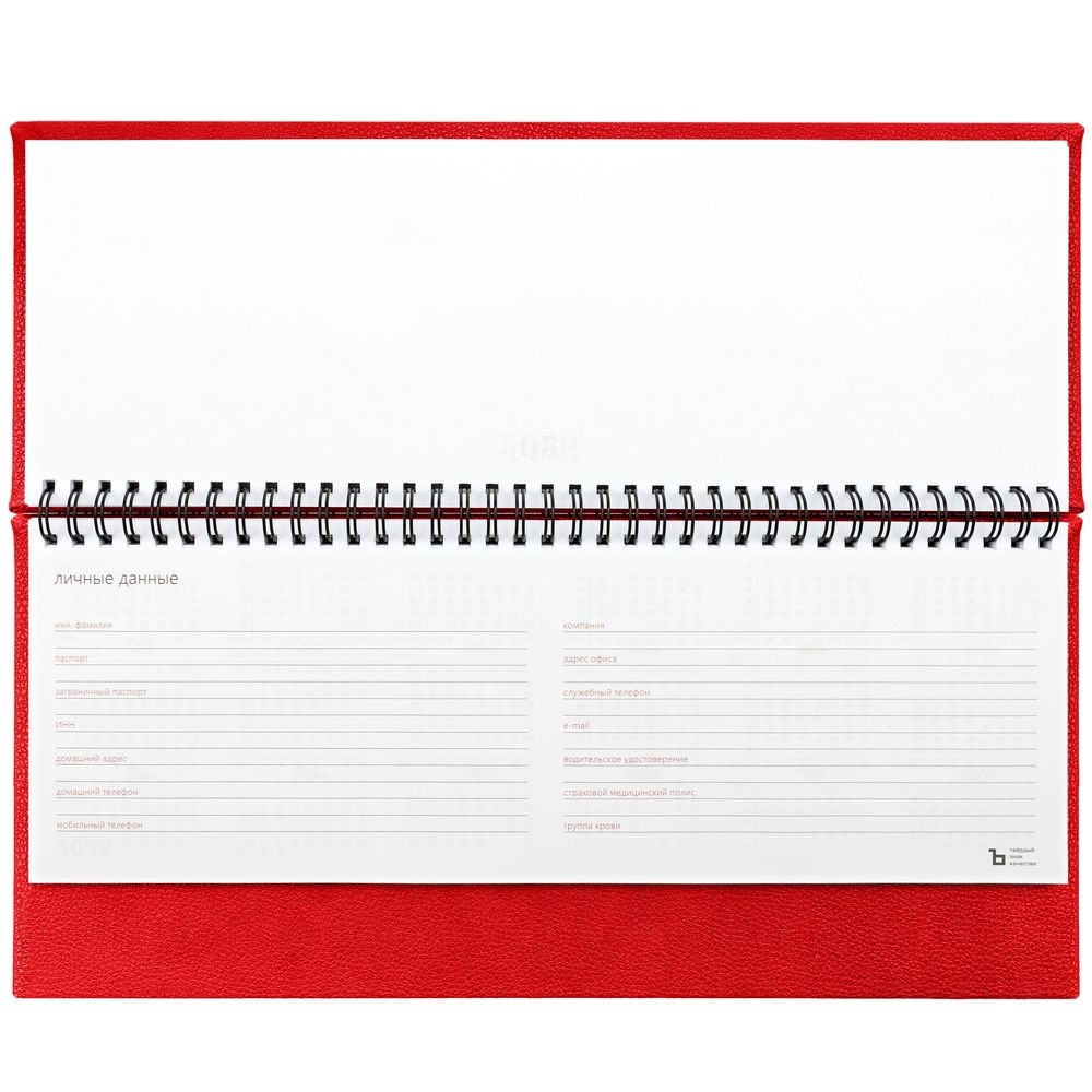 Планинг с твердой обложкой с поролоном, выполнен из материала La Fite, красный РР.Блок 944:Кол-во страниц — 128;Бумага — белая, плотность 70 г/м?.
