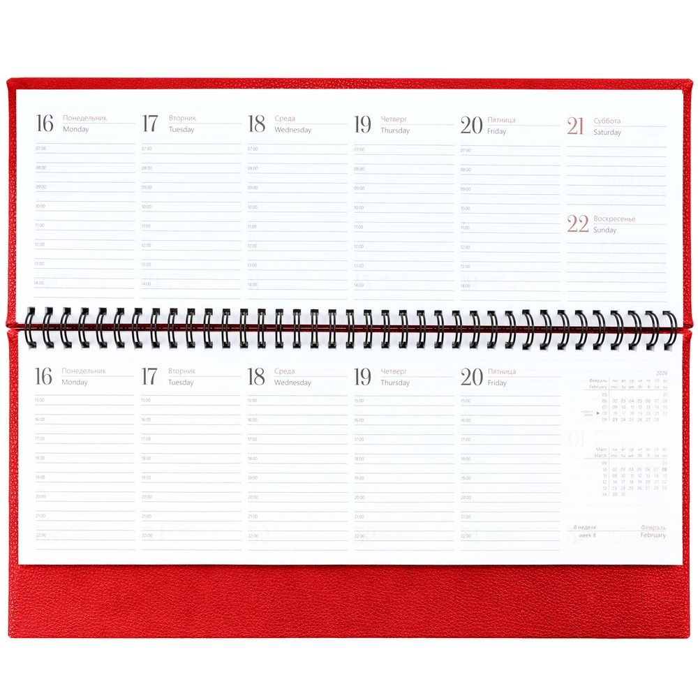 Планинг с твердой обложкой с поролоном, выполнен из материала La Fite, красный РР.