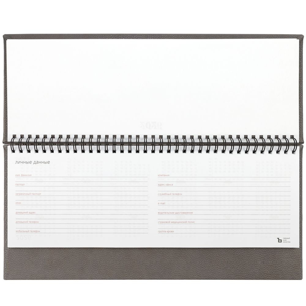 Планинг с твердой обложкой с поролоном, выполнен из материала La Fite, серый СС.Блок 944:Кол-во страниц — 128;Бумага — белая, плотность 70 г/м?.