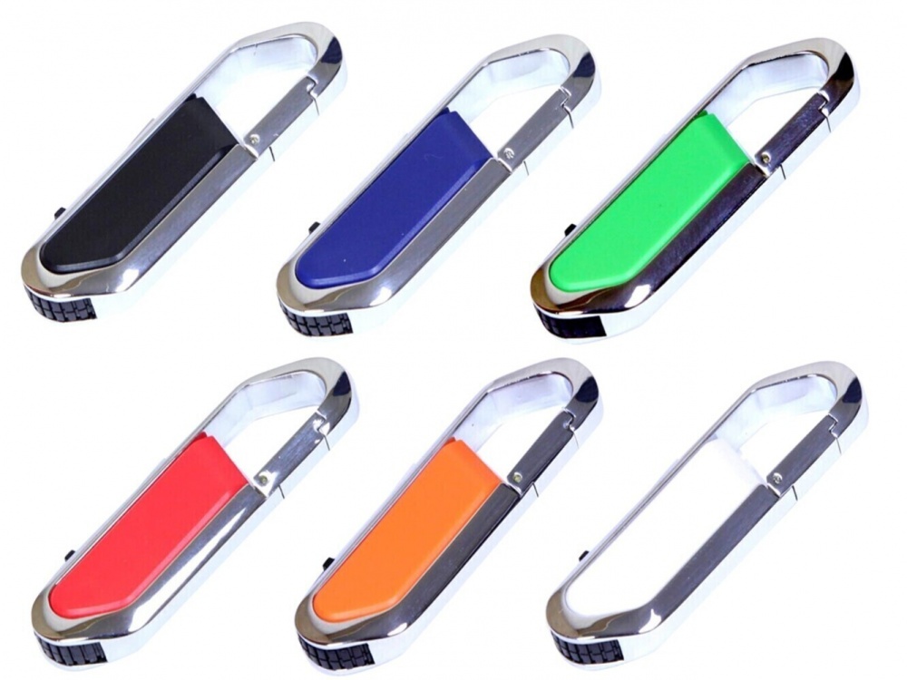 Флеш-накопитель в виде карабина, 64 Гб. Металлический корпус с цветными пластиковыми вставками.