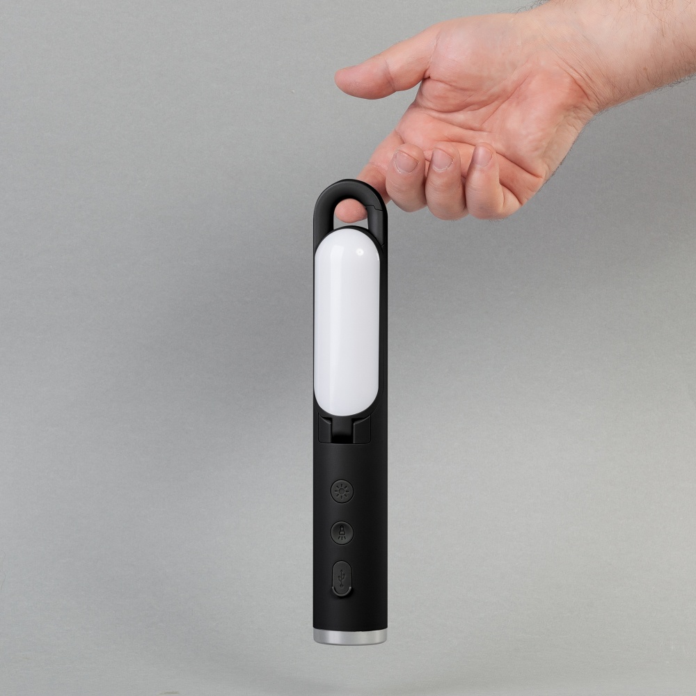 "Torch" - верный спутник в любом приключении. Универсальное и надежное освещение для походов, кемпинга или посиделок на природе поздним вечером. Лампа (169 лм) с теплым объемным светом 5 режимов, 2 сегмента с независимой регулировкой угла 0-90?. Фонарь (79 лм) с холодным светом 4 режима, направленный луч для построения маршрута. Встроенная батарея емкостью 1200 mAh, зарядка через разъем type-C, индикатор 25/50/75/100%. Комфортная посадка в руке в сложенном виде. Карабин - опция must-have для активного отдыха. "Torch" – его стихия ночь!