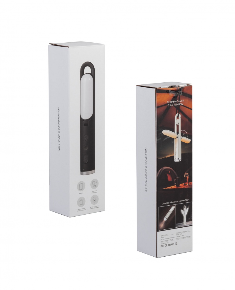 Лампа (169 лм) с теплым объемным светом 5 режимов, 2 сегмента с независимой регулировкой угла 0-90º. Фонарь (79 лм) с холодным светом 4 режима, направленный луч для построения маршрута. Встроенная батарея емкостью 1200 mAh, зарядка через разъем type-C, индикатор 25/50/75/100%.