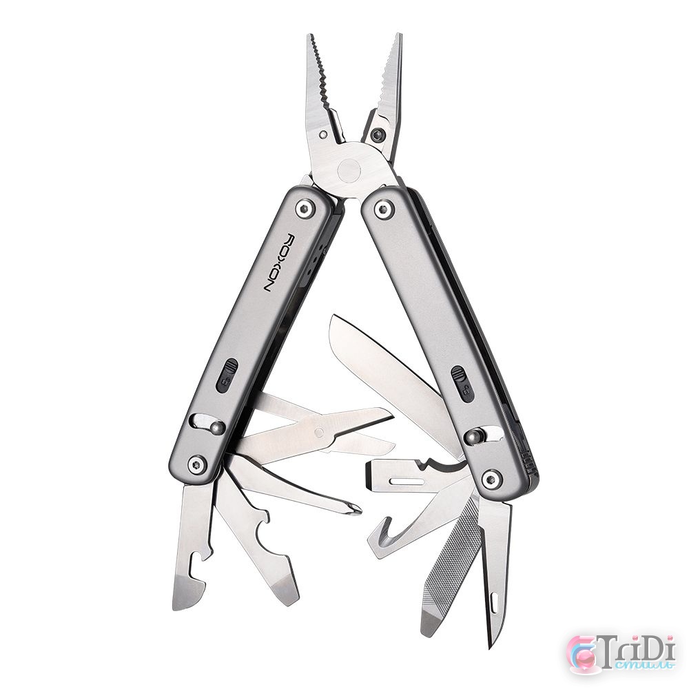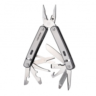 Roxon Flex S804G — универсальный складной мультитул с возможностью выбора и замены инструментов. Эта функция значительно облегчает устройство и делает его более эргономичным. Для добавления или замены инструментов предусмотрены 10 слотов — по 5 в каждой ручке. Каждый инструмент легко заменяется и фиксируется с помощью специального механизма.Изогнутые ручки со скругленными ребрами надежно лежат в ладони, а благодаря его сбалансированному весу рука не устает при длительной работе с инструментом.На одной из рукоятей расположена клипса для крепления складного мультитула на кармане или на поясе. Для безопасной транспортировки мультитул оснащен замком Axis, который надежно фиксирует инструменты в сложенном положении и предотвращает их случайное открытие.Длина лезвия 70 мм.В комплекте нейлоновый чехол, фиксатор для сменных инструментов, сменные кусачки и отвертка Т8.Имеет 14 функций:КусачкиПлоскогубцыНожницыНапильникСтропорезИнструмент для снятия изоляцииСтамескаКонсервный ножИнструмент для вскрытия коробокКрестовая отверткаПлоская отверткаШилоОткрывалка для бутылокЛинейка