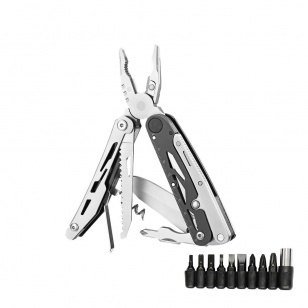 Универсальный мультитул пригодится в туристическом походе, в экстренной ситуации, для ремонта или решения бытовых и рабочих вопросов.Полноразмерные ножницы — отличительная особенность модели G304. Их можно снять с корпуса мультитула и использовать как самостоятельный инструмент. Чтобы отделить ножницы, нужно сначала достать крестовую отвертку, которая служит для них своеобразным фиксатором. Затем одним движением руки ножницы вытаскиваются из пазов — и готовы к работе.Длина лезвия 75 мм.В комплекте нейлоновый чехол и набор из 9 съемных бит.Имеет 8 функций:КусачкиПлоскогубцыНожПилаНожницыШтопорКрестовая отверткаЛинейка