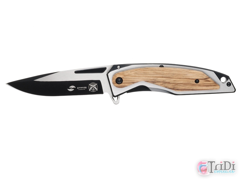 Нож складной Stinger, 120 мм, (черный/серебристый), материал рукояти: нержавеющая сталь/дерево