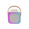 Bluetooth-колонка мощностью 3W с аккумулятором на 600 mAh. В комплекте два микрофона. Яркая RGB-подсветка с разными режимами задает неповторимую атмосферу. Доступно воспроизведение c USB-флешек, TF-карт, проводом через разъем jack.