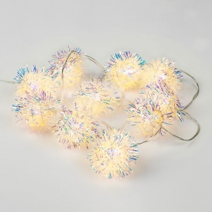Шепот, нежное шуршание... Огоньки гирлянд! Все это — про гирлянду с мишурой Froufrou, которая совмещает в себе сразу несколько традиционных элементов новогоднего декора. Светящиеся милые снежки, украшенные мишурой, добавляют озорного настроения и конечно, приятного праздничного шуршания, без которого не обойтись в преддверии Нового года!10 помпонов с мишурой с лампочками теплого света. Работает от 2 батареек АА (в комплект не входят).