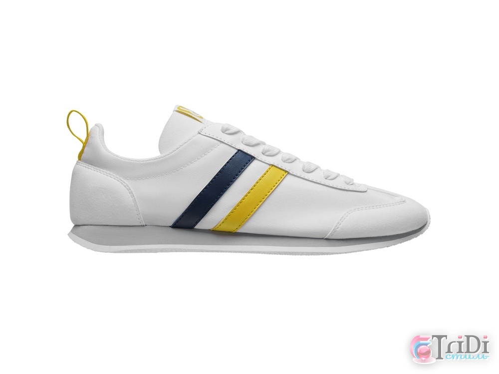 Повседневные кроссовки в стиле ретро с узким носком и резиновой подошвой. Фиксация на ноге с помощью шнурков, декоративные боковые полоски.