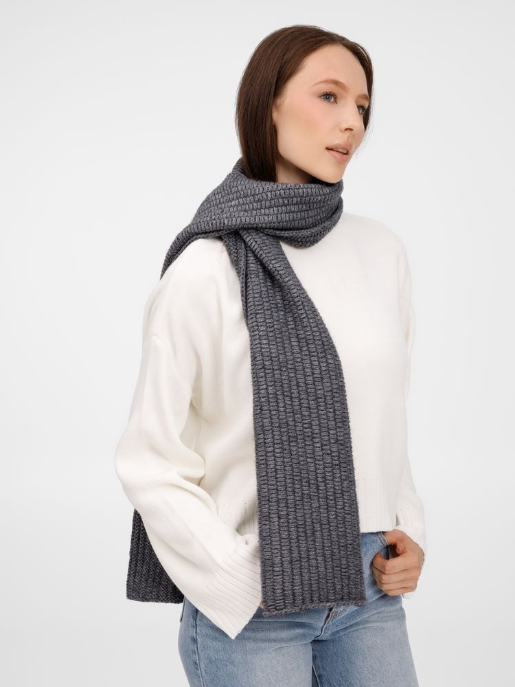 Однослойный шарф Frissonelle фактурной вязки — универсальный аксессуар: полушерстяная пряжа с выразительным рельефным узором создает объем, даря тепло и ощущение уюта. Сдержанная палитра и лаконичный дизайн делают его гармоничным дополнением к пальто, куртке или пуловеру.Поставляется в пакете с липким краем.