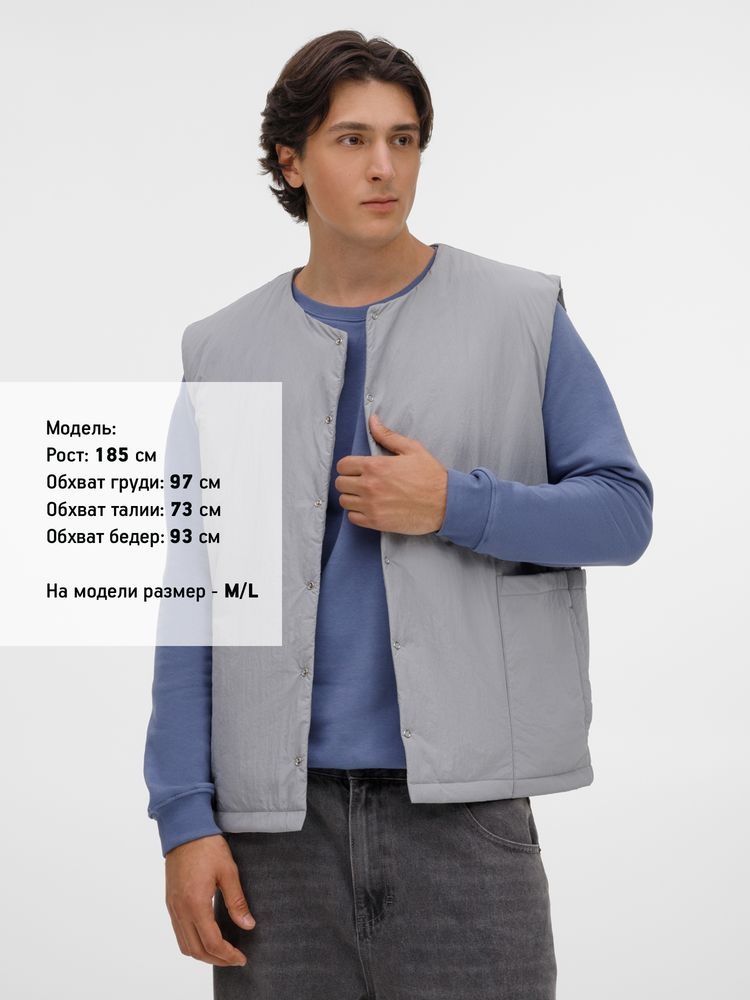 Veter: Невесомое тепло. Коллекция верхней одежды, что легко согревает и обволакивает, как теплый и ласковый ветер, и в то же время ветра совсем не боится. Жилет из нейлона с текстурой мятого шелка создает приятный микроклимат, в котором воздушность сочетается с комфортной терморегуляцией. Функциональность в деталях: 8 карманов для маневренности в городе, кнопки, подчиняющиеся движению пальца. Выберите свой лаконичный оттенок, который станет словно второй кожей в любой ситуации.Жилет унисекс Veter прямого кроя из нейлона.Матовая ткань с эффектом мятого шелкаЦентральная застежка — металлические кнопки серебристого цвета6 карманов на лицевой стороне куртки: два спереди и два сзади с вертикальным входом и 2 прорезных кармана с листочкой 2 потайных кармана на молнииДля удобства нанесения логотипа на подкладке изделия предусмотрена потайная молния по низу изделияПоставляется в индивидуальном фирменном пакете zip-lock с ручками.Таблица размеров, смXS/S44-46M/L48-50XL/2XL52-543XL/4XL58-60A59636771B667076,880Допускаются отклонения в 5% от указанных параметров по размеру и цвету