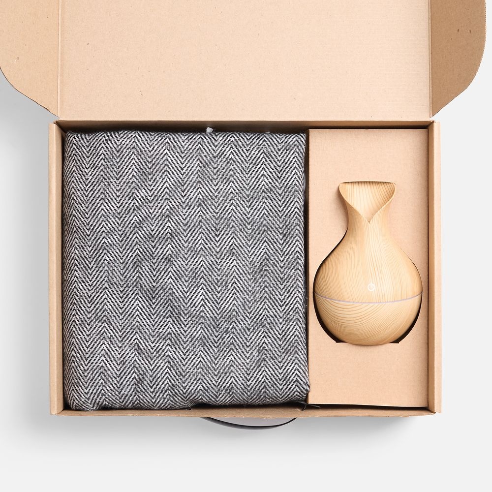 Набор Breezelite — простое решение для создания уютной атмосферы в любом пространстве. Мягкий плед нежных оттенков подарит тепло и комфорт, а изящный увлажнитель наполнит воздух свежестью и приятным ароматом. Этот набор — гармония красоты и функциональности, где каждый момент посвящен ценному отдыху и расслаблению. Breezelite — когда стиль встречается с заботой. Перед началом использования увлажнителя следует обязательно размочить хлопковый фильтр в воде с двух сторон.