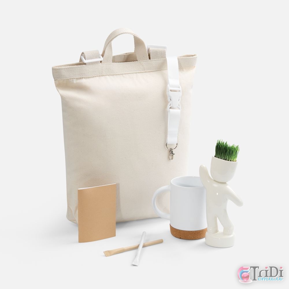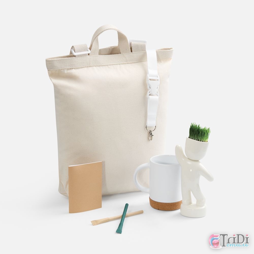 | Материал | рюкзак - хлопок, плотность 280 г/м?; набор для выращивания Funky Buddy - керамика; кружка - каменная керамика, подставка - пробка; коробка - микрогофрокартон, Т-23Е; лента - нейлон, пластик; металл; блокнот, ручка - картон |