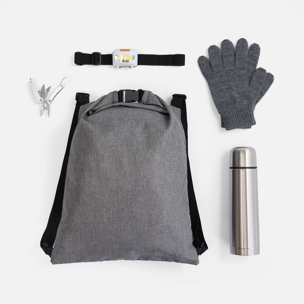 Материал | перчатки - 50% шерсть, 50% акрил; фонарь - пластик; мультитул - нержавеющая сталь, алюминий; термос - нержавеющая сталь, 304 внутри, 201 снаружи; пластик; рюкзак - полиэстер, 300D |