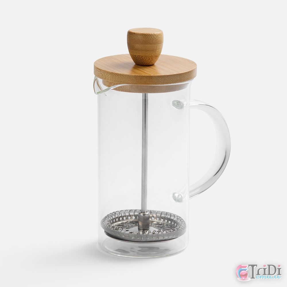 Френч-пресс с изящным сочетанием прозрачного боросиликатного стекла и натурального дерева станет стильным акцентом на кухне. Эргономичная ручка и удобная деревянная крышка с поршнем обеспечивают легкость и комфорт в использовании. Благодаря прочному прозрачному стеклу можно наблюдать за процессом заваривания, наслаждаясь каждым этапом приготовления насыщенного и ароматного чая. Френч-пресс Alba — идеальный выбор для тех, кто ценит качество, элегантность и натуральные материалы в повседневных кухонных аксессуарах. Сделайте каждое утро особенным с чашкой любимого чая!Емкость 350 мл.Поставляется в индивидуальной транспортной коробке.