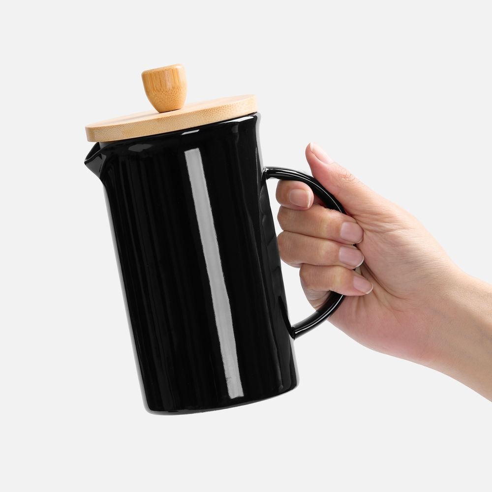 Элегантный керамический френч-пресс Mezzo в глянцевом черном исполнении — функциональный кухонный аксессуар и украшение любого пространства, от уютной домашней кухни до стильного офиса.Емкость 600 мл.Элементы из бамбука не подходят для мытья в посудомоечной машине.