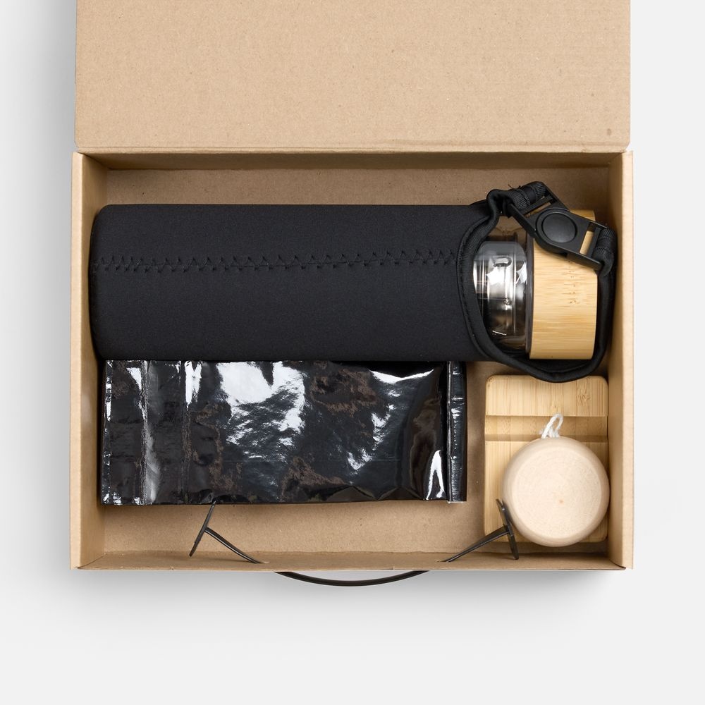 Материал | дерево; бутылка - боросиликатное стекло, чехол - неопрен; ситечко - нержавеющая сталь; крышка - бамбук, пластик; подставка - бамбук; игрушка-антистресс - дерево; коробка - микрогофрокартон |