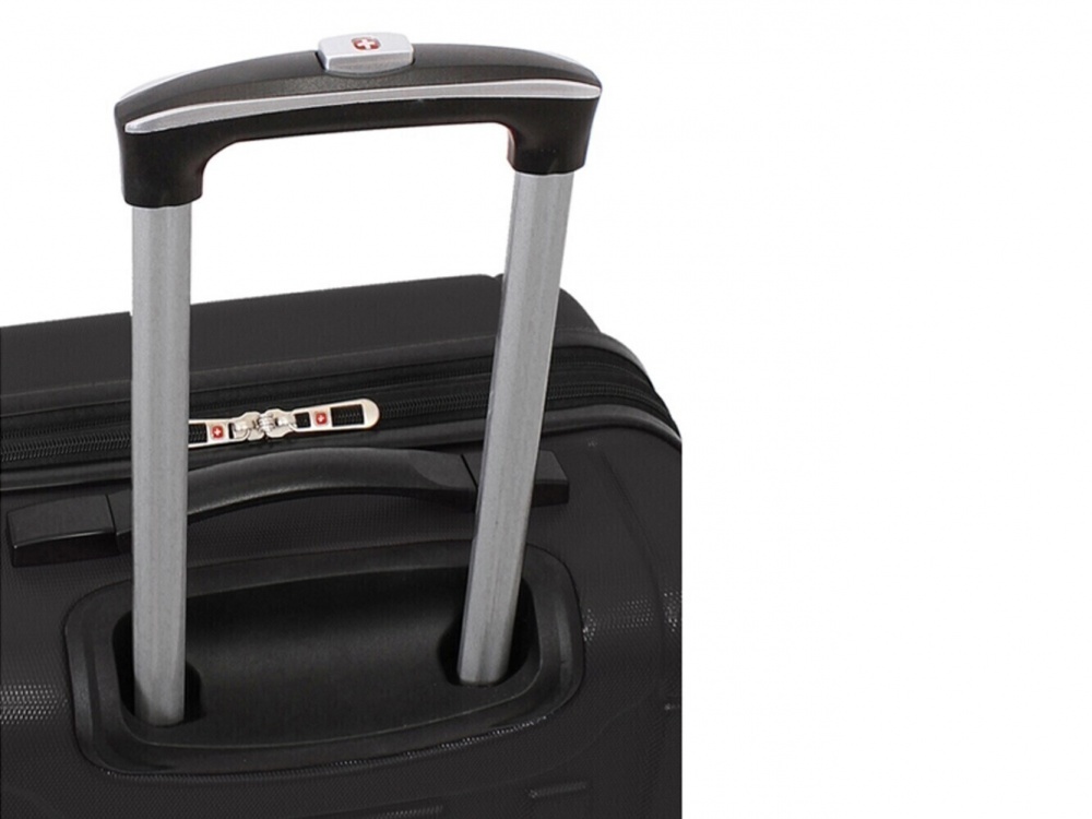 Телескопическая выдвижная алюминиевая ручка с функцией фиксации складывается в специальный отсек. Для комфорта при транспортировке сверху и боку чемодана расположены внешние усиленные ручки из формованной резины, что позволяет легко поднимать и перемещать чемодан.