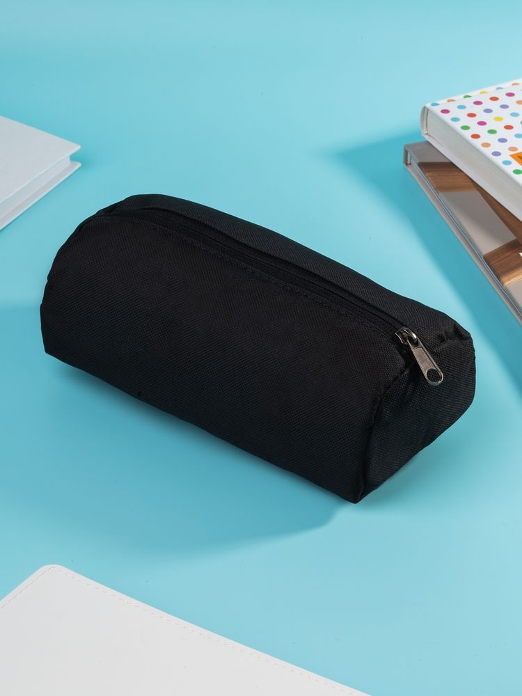 Пенал полукруглой формы с одним отделением на молнии.Способ обработки швов: окантовочная лента.