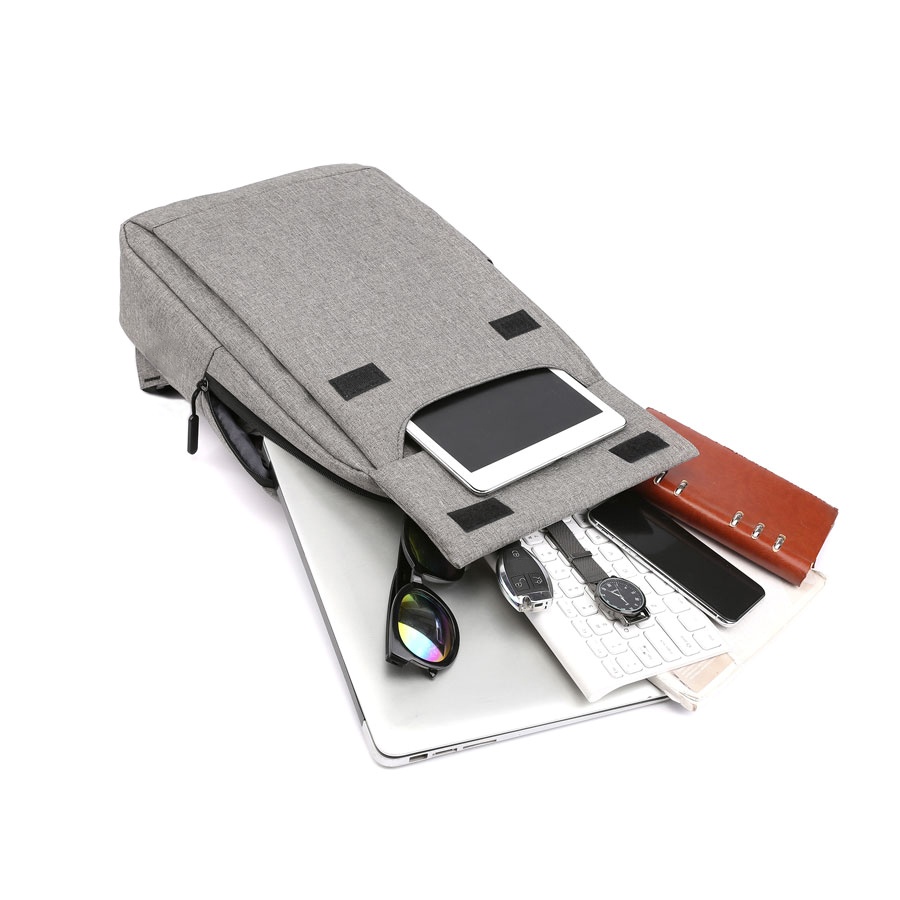 Одно большое отделение закрывается молнией со скрытым звеном. Внутри большой уплотненный карман для ноутбука 15,6 дюймов с клапаном-резинкой на велькро и карман-органайзер для мелких аксессуаров. На передней стенке большой карман с клапаном на велькро. Сбоку открытый карман и USB-разъем с проводом для подключения внешнего аккумулятора. Уплотнённая короткая ручка для дополнительного комфорта рук. Уплотнённые плечевые ремни регулируются по длине.