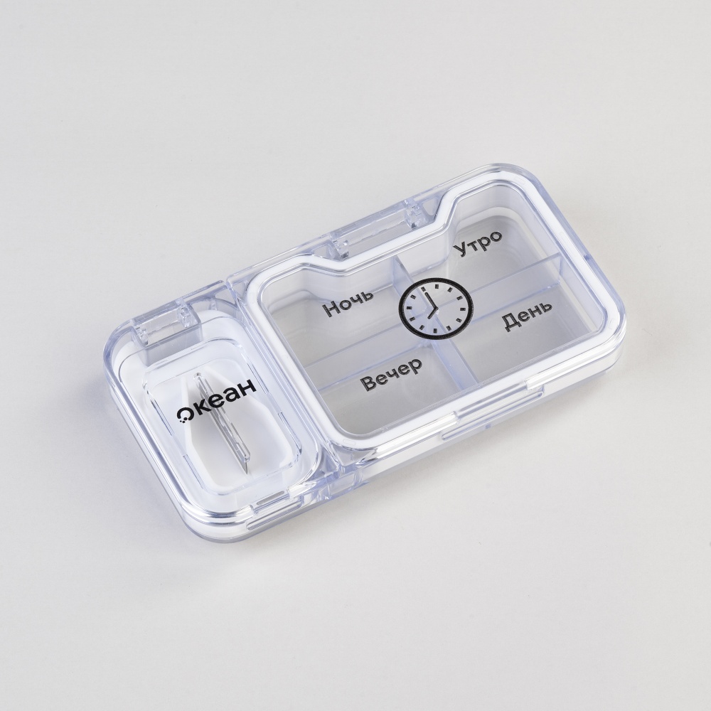 - Упорядочить прием лекарств. 4 отделения позволяют рассортировать таблетки по времени приема (утро/день/вечер/ночь) или по типу лекарства.