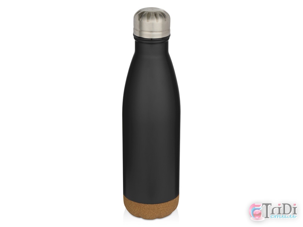 Бутылка для воды Cove из нержавеющей стали с двойными стенками и вакуумной изоляцией, объемом 500 мл, с пробковыми деталями - сплошной черный