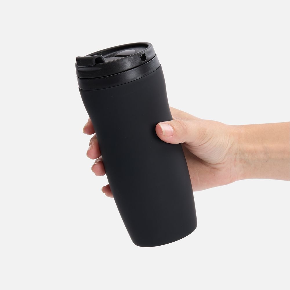 Емкость 350 мл.Двухслойная конструкция из нержавеющей стали снаружи и пищевого пластика внутри. Герметичная завинчивающаяся крышка с откидным клапаном для питья. Покрытие софт-тач. В отверстие в крышке можно вставить шнурок для удобного ношения стакана на руке. Шнурок в комплект не входит.Крышку можно мыть в посудомоечной машине, корпус рекомендуем мыть вручную.Изменение температуры напитка внутри закрытого стакана: При температуре окружающей среды +20 °Сначальная температура — 95 °Счерез 1 час — 70 °Счерез 2 часа — 50 °С