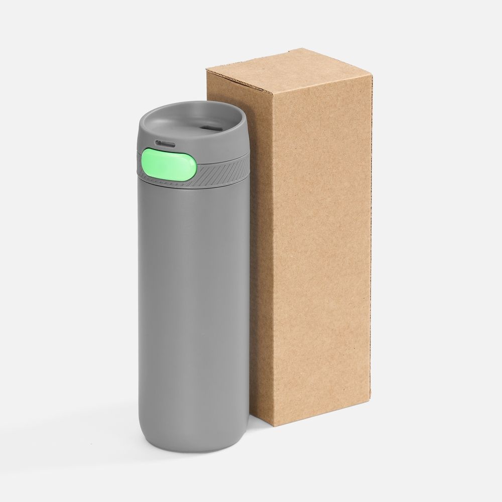 Термостакан X1 с цветной кнопкой, серый с зеленым