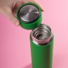 Компактный термос Percola пригодится и в городе, и на природе. Съемное ситечко поможет заварить чистую чашку чая или кофе, а цилиндрический корпус даст широкие возможности для маркетинговых сообщений.Емкость 500 мл.Стальная колба с двойными стенками и вакуумной изоляцией сохраняет тепло до 18 часовСъемное ситечко для завариванияПластиковые детали не содержат бисфенол АИзменение температуры напитка внутри закрытого термоса:При температуре окружающей среды +20 °Сначальная температура — 95 °Счерез 3 часа — 85 °Счерез 5 часов — 75 °Счерез 9 часов — 60 °Счерез 18 часов — 50 °СИз-за технологических особенностей процесса круговой гравировки нанесение встык не производится.Крышку и корпус рекомендуем мыть вручную.