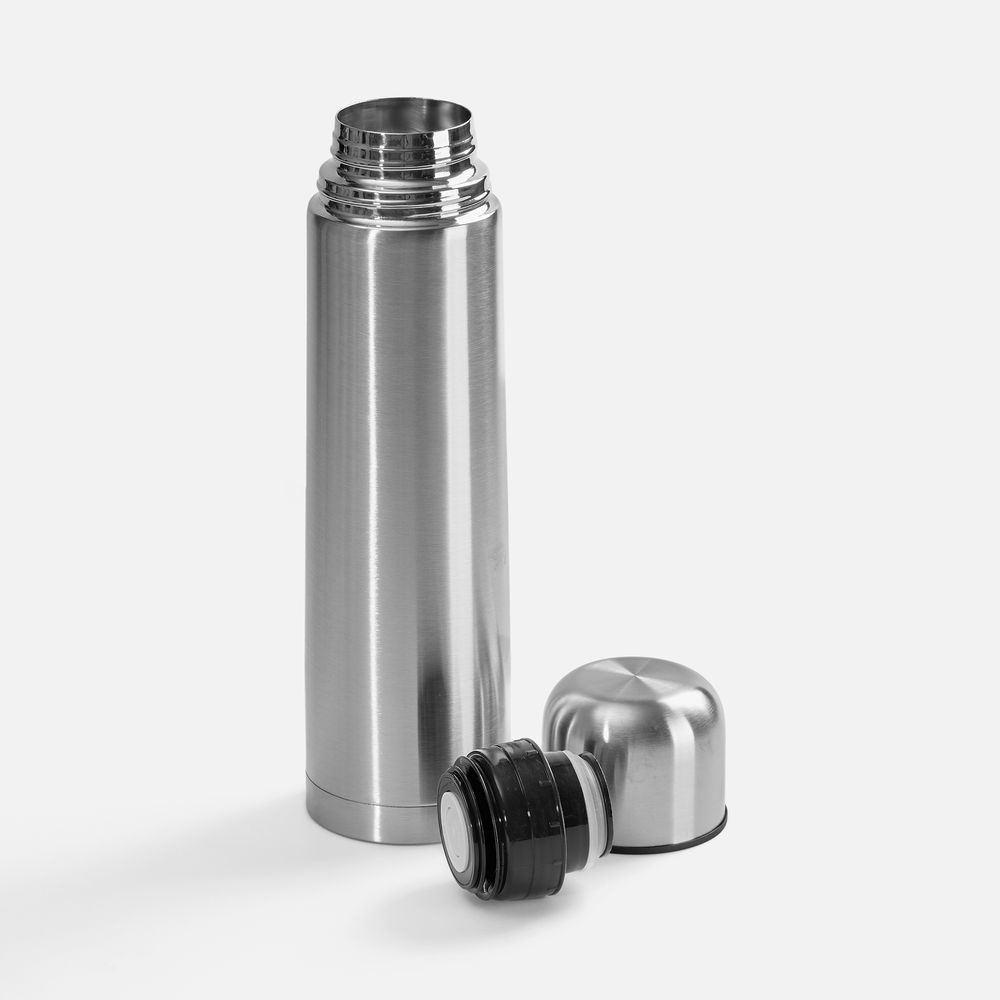 Емкость 1000 мл.Двухслойная вакуумная конструкция из нержавеющей стали внутри и снаружи с завинчивающейся пробкой с клапаном.Изменение температуры напитка внутри закрытого стакана:При температуре окружающей среды +20 °Сначальная температура — 95 °Счерез 3 часов — 70 °Счерез 6 часов — 60 °Счерез 12 часов — 55 °Счерез 24 часа — 45 °СИз-за технологических особенностей процесса круговой гравировки нанесение встык не производится.Крышку можно мыть в посудомоечной машине, корпус рекомендуем мыть вручную.