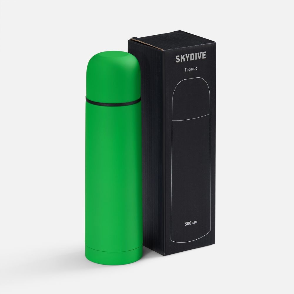 С возможностью подзарядиться бодрящим напитком любые задачи по плечу — как в городе, так и на природе. Компактный термос Skydive поможет быть в тонусе и тепле, а еще его особенно приятно держать в руке благодаря мягкому прорезиненному покрытию софт-тач.Емкость 500 мл.Двухслойная вакуумная конструкция из нержавеющей стали с завинчивающейся пробкой с клапаном.Изменение температуры напитка внутри закрытого стакана:При температуре окружающей среды +20 °Сначальная температура — 95 °Счерез 6 часов — 74 °Счерез 12 часов — 65 °Счерез 24 часа — 40 °СИз-за технологических особенностей процесса круговой гравировки нанесение встык не производится.Крышку можно мыть в посудомоечной машине, корпус рекомендуем мыть вручную.