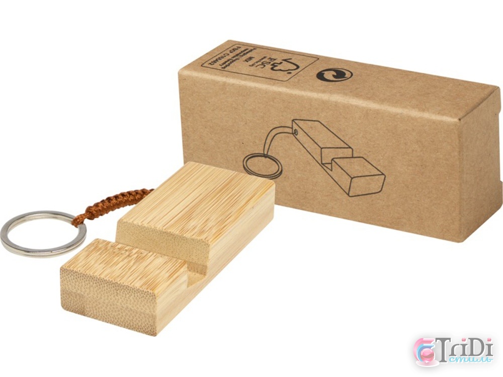 Держатель для телефона с брелком для ключей Bosona изготовлен из бамбука. Может быть как стильным аксессуаром, так и подставкой для телефона, которая всегда под рукой.