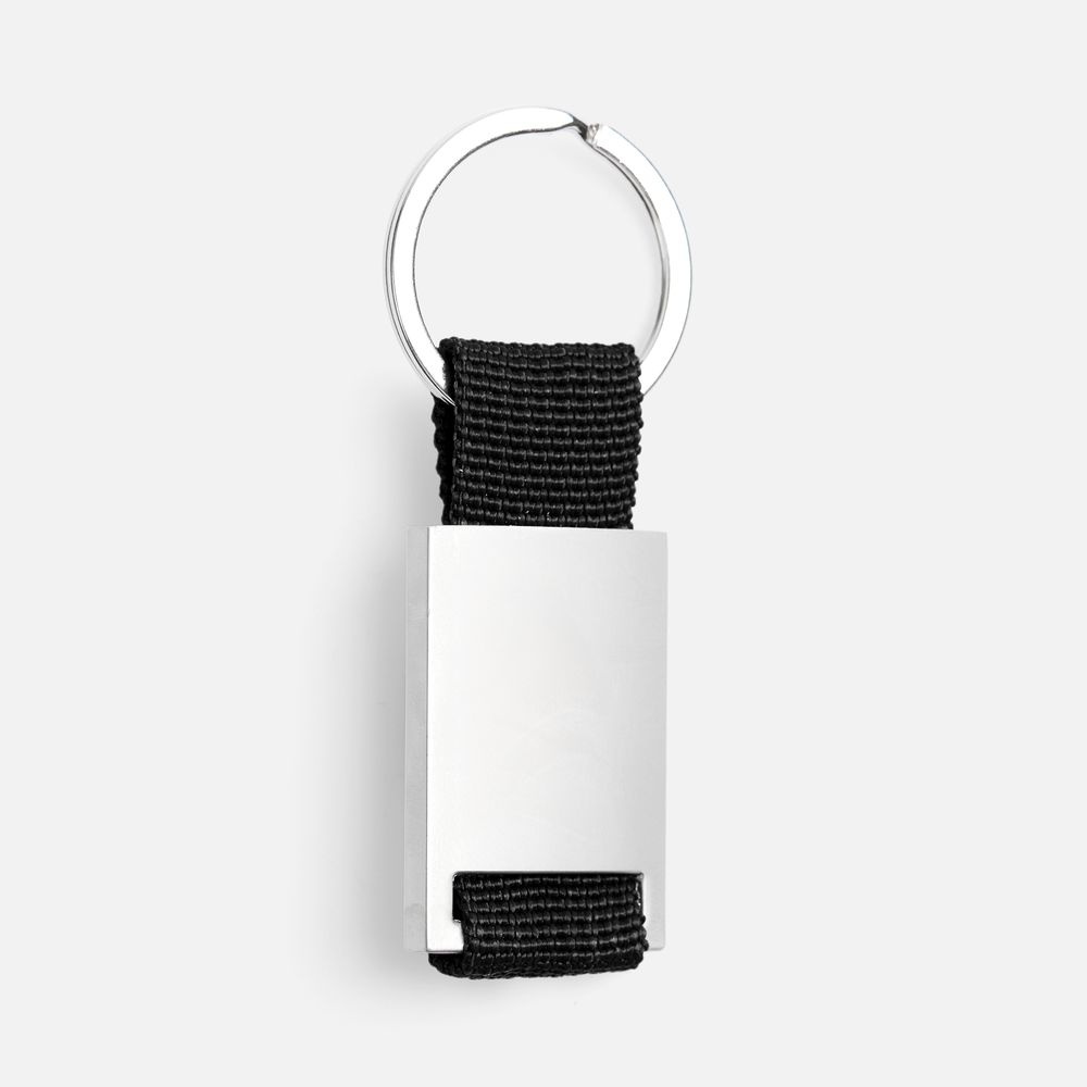 Минималистичный металлический брелок с тканевой вставкой.Поставляется в индивидуальной упаковке.