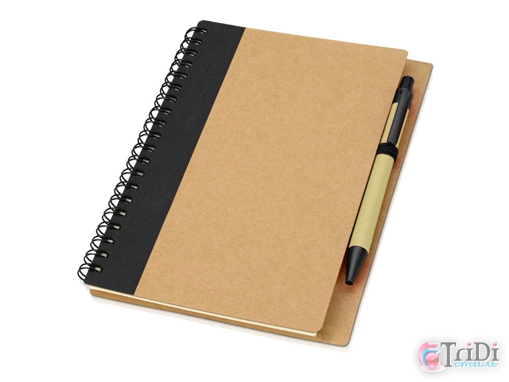 Блокнот с 60 листами переработанной бумаги 70 г/м2 и картонной ручкой в цвет блокнота.