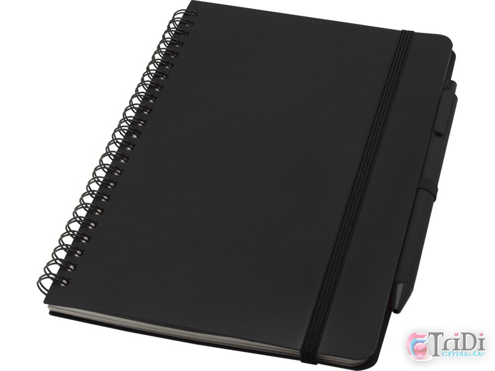Блокнот Thalaasa формата А5 в твердой обложке из океанического пластика с шариковой ручкой - сплошной черный