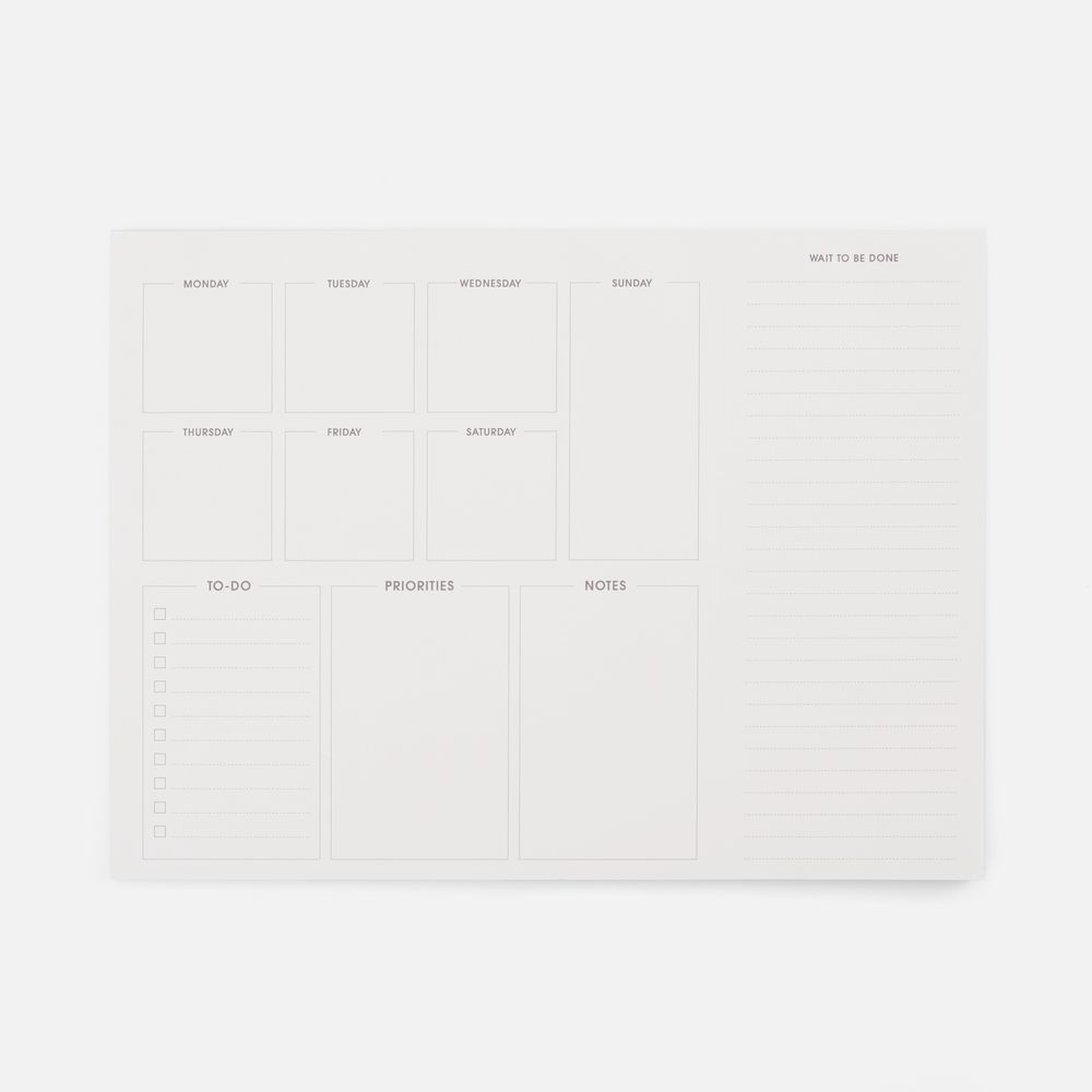 7 дней — 7 вызовов продуктивности, 7 стратегий, разбивающихся на несколько подпунктов и тактик. Настольный планер Septima подойдет и для работы, и для дома, ведь воскресенье — зачастую самый важный и насыщенный день недели.На одном листе удобно расписать сразу всю свою текущую неделю, чтобы перед глазами была целая картина. Откидной формат тоже упрощает использование: закончилась неделя — просто переверните страницу. При этом у Septima удобная и продуманная разлиновка: для ежедневных планов и составления важных списков — дел и приоритетов, заметок и отложенных задач. Septima — это еще и экологичное решение, так как его обложка и блок изготовлены из переработанного картона.Настольный планер на 80 листов. Плотность бумаги 80 г/м?.Обложка и блок выполнены из переработанного картона.