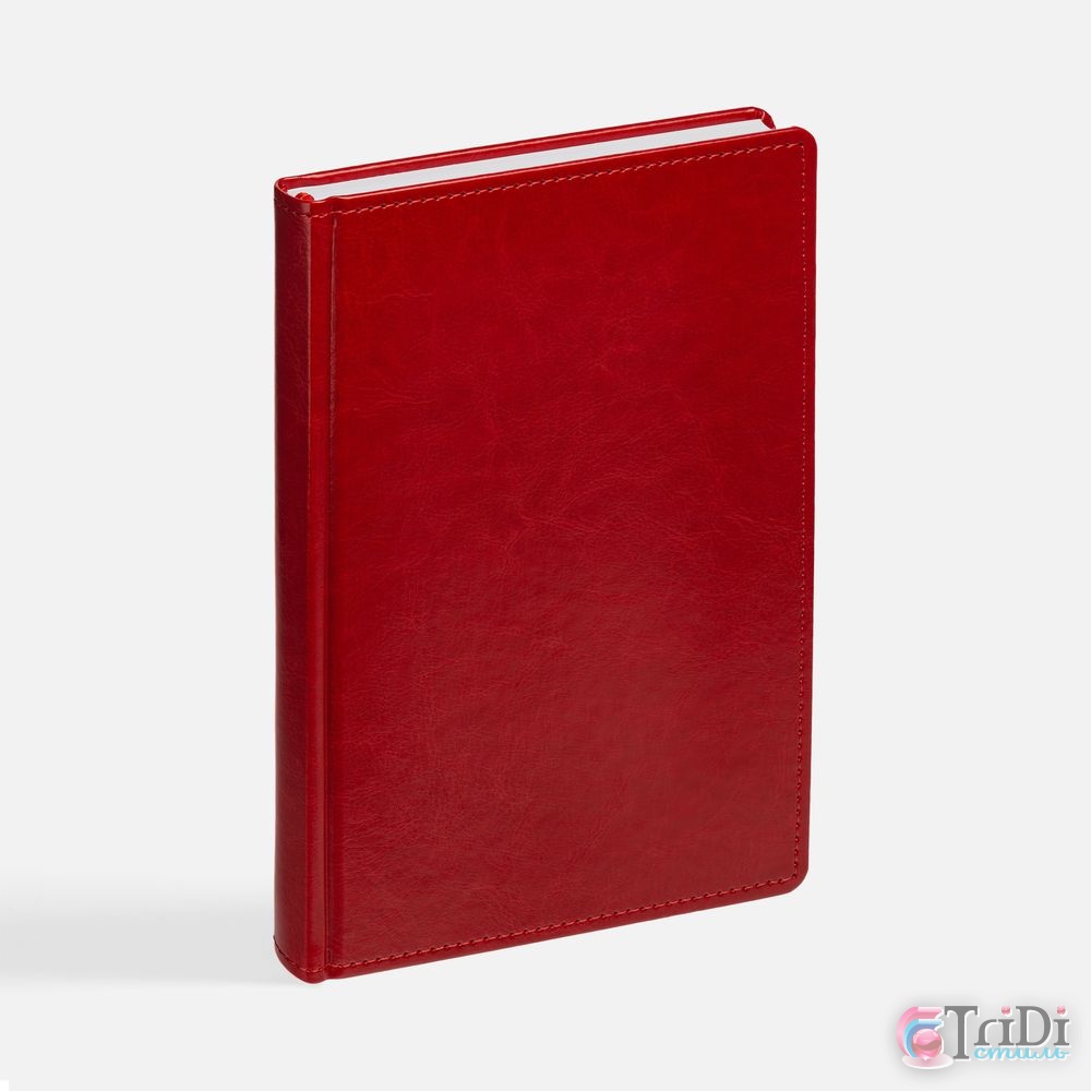 Ежедневник с твердой обложкой без поролона, выполнен из материала Nebraska, красный PP, дополнен ляссе и капталом в цвет обложки.