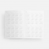 Гибкая обложка выполнена из материала Velour Melange, серый СС и Latte, бирюзовый II (внутренняя часть обложки). Внутри корешка — специальное место для крепления ручки размером до 15х0,9 см.Блок 985:Кол-во страниц — 256;Бумага — белая, плотность 70 г/м?;Обрез блока — цветной;Форзац и нахзац — белые.