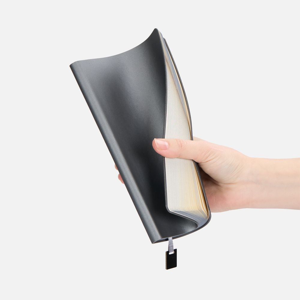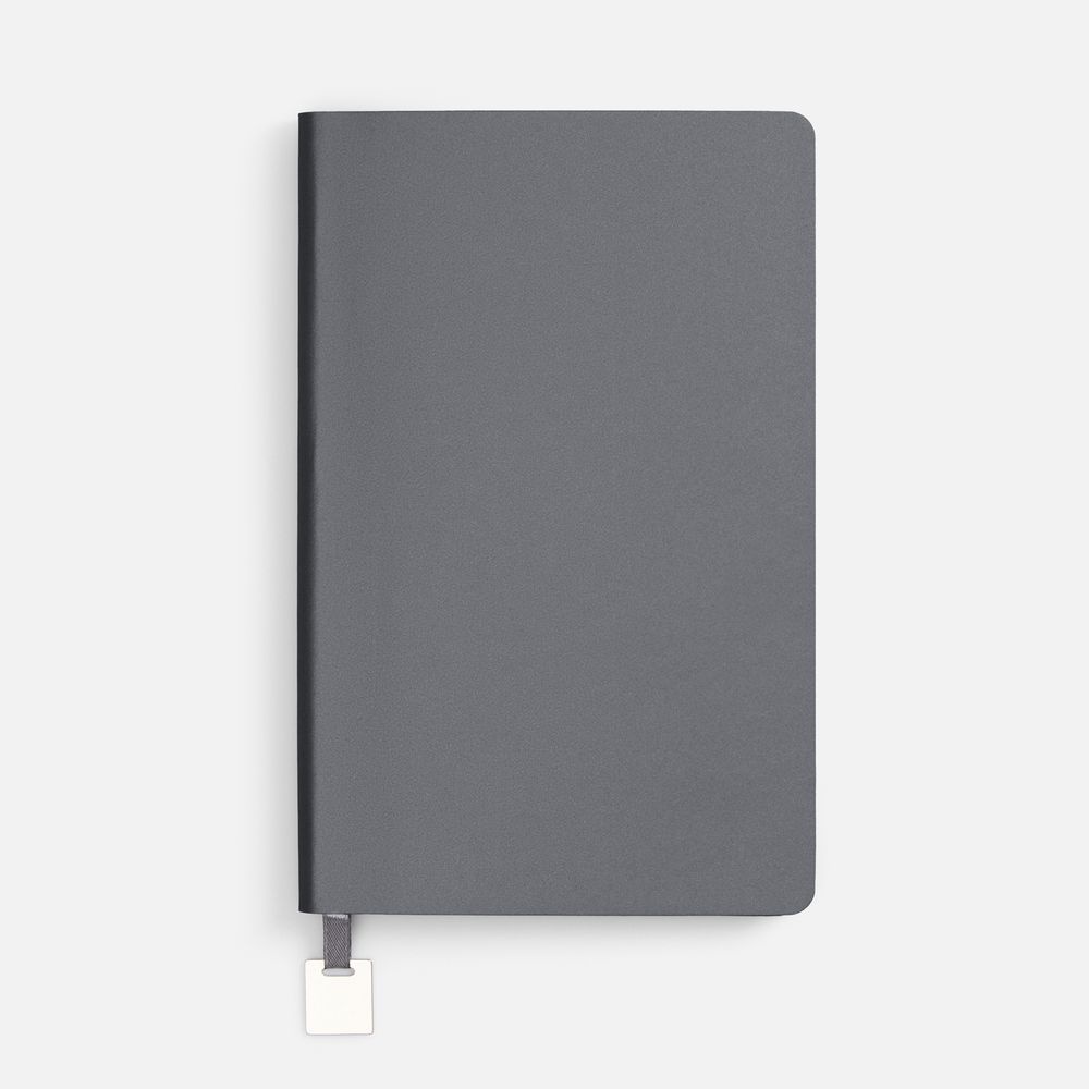 Ежедневник с гибкой обложкой, выполнен из материалов Soft Touch Pearl, серый СС, и Latte, серый (внутренняя часть обложки), дополнен ляссе в цвет обложки с металлическим шильдиком.Блок без календарной сетки и информационного блока:Кол-во страниц — 192;Бумага — тонированная, плотность 80 г/м?;Обрез — серый;Форзац и нахзац — тонированные.