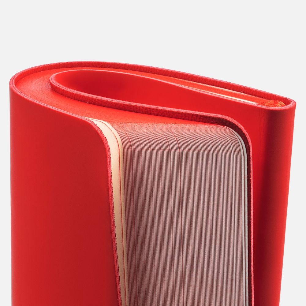 Ежедневник с гибкой обложкой, выполнен из материалов Soft Touch Ultra, красный РР, и Latte, красный (внутренняя часть обложки), дополнен ляссе в цвет обложки с металлическим шильдиком.Блок без календарной сетки и информационного блока:Кол-во страниц — 192;Бумага — тонированная, плотность 80 г/м?;Обрез — красный;Форзац и нахзац — тонированные.