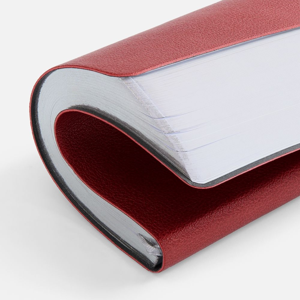 Ежедневник с гибкой обложкой, выполнен из материала Petrus, красный РР, дополнен серым ляссе с металлическим шильдиком.Блок 951, без календарной сетки и информационного блока: Кол-во страниц — 256;Бумага — белая, плотность 70 г/м?;Форзац и нахзац — белыеОбрез блока — серебристый.