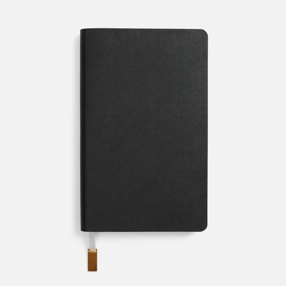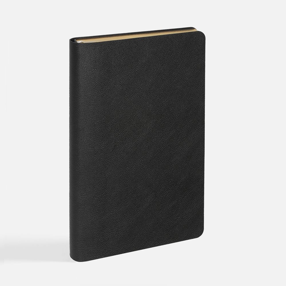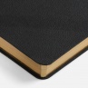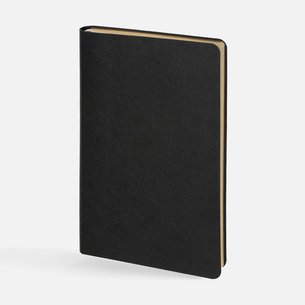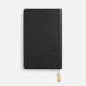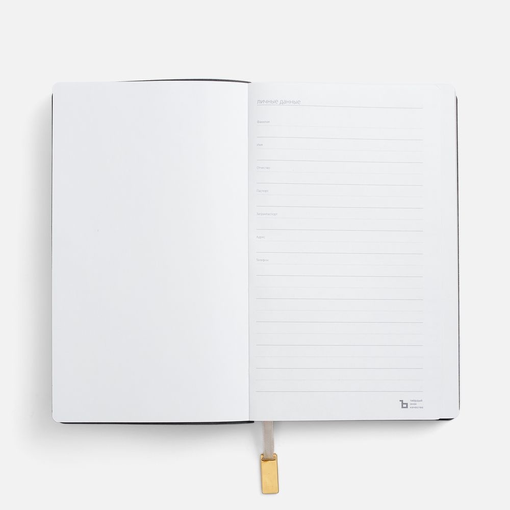 Ежедневник с гибкой обложкой, выполнен из материала Petrus, черный АА, дополнен серым ляссе с металлическим золотистым шильдиком.Блок 951, без календарной сетки и информационного блока:Кол-во страниц — 256;Бумага — белая, плотность 70 г/м?;Форзац и нахзац — белыеОбрез блока — золотистый.