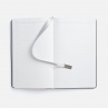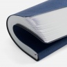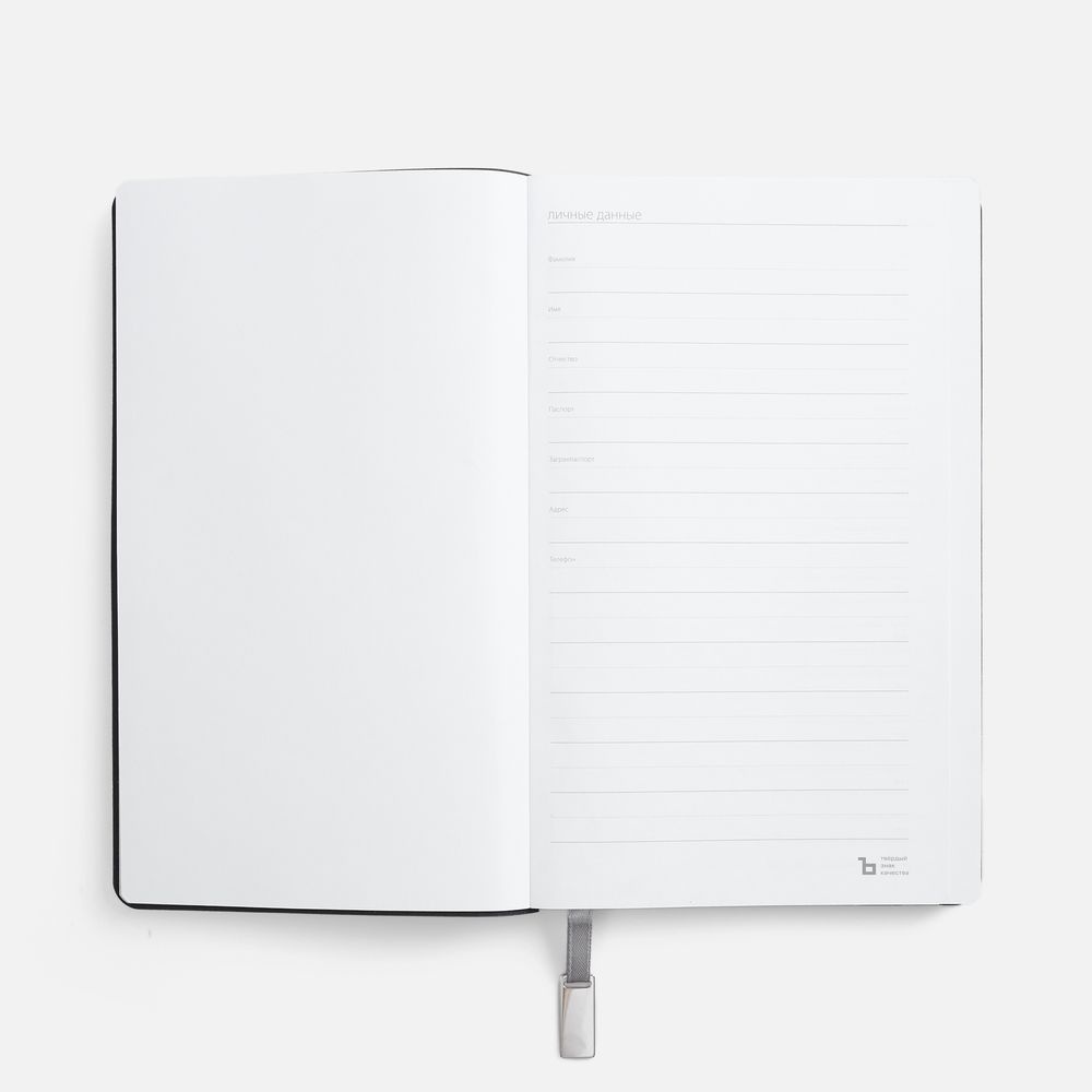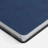 Ежедневник с гибкой обложкой, выполнен из материала Petrus, синий НН, дополнен серым ляссе с металлическим шильдиком.Блок 951, без календарной сетки и информационного блока:Кол-во страниц — 256;Бумага — белая, плотность 70 г/м?;Форзац и нахзац — белыеОбрез блока — серебристый.
