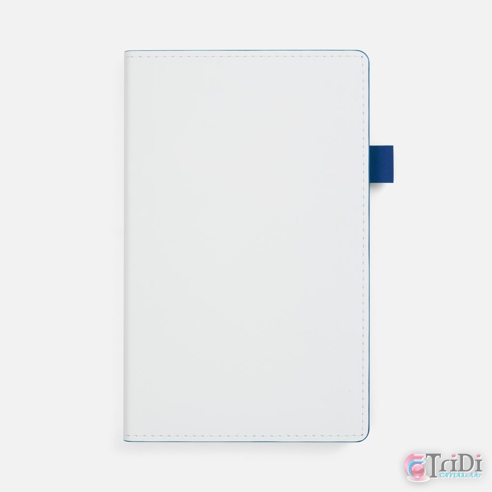 Гибкая обложка, материал обложки — Soft Touch, белый BB и Latte, синий НН; материал петли для ручки — Nice Touch, синий НН. Срез обложки окрашен в синий цвет.