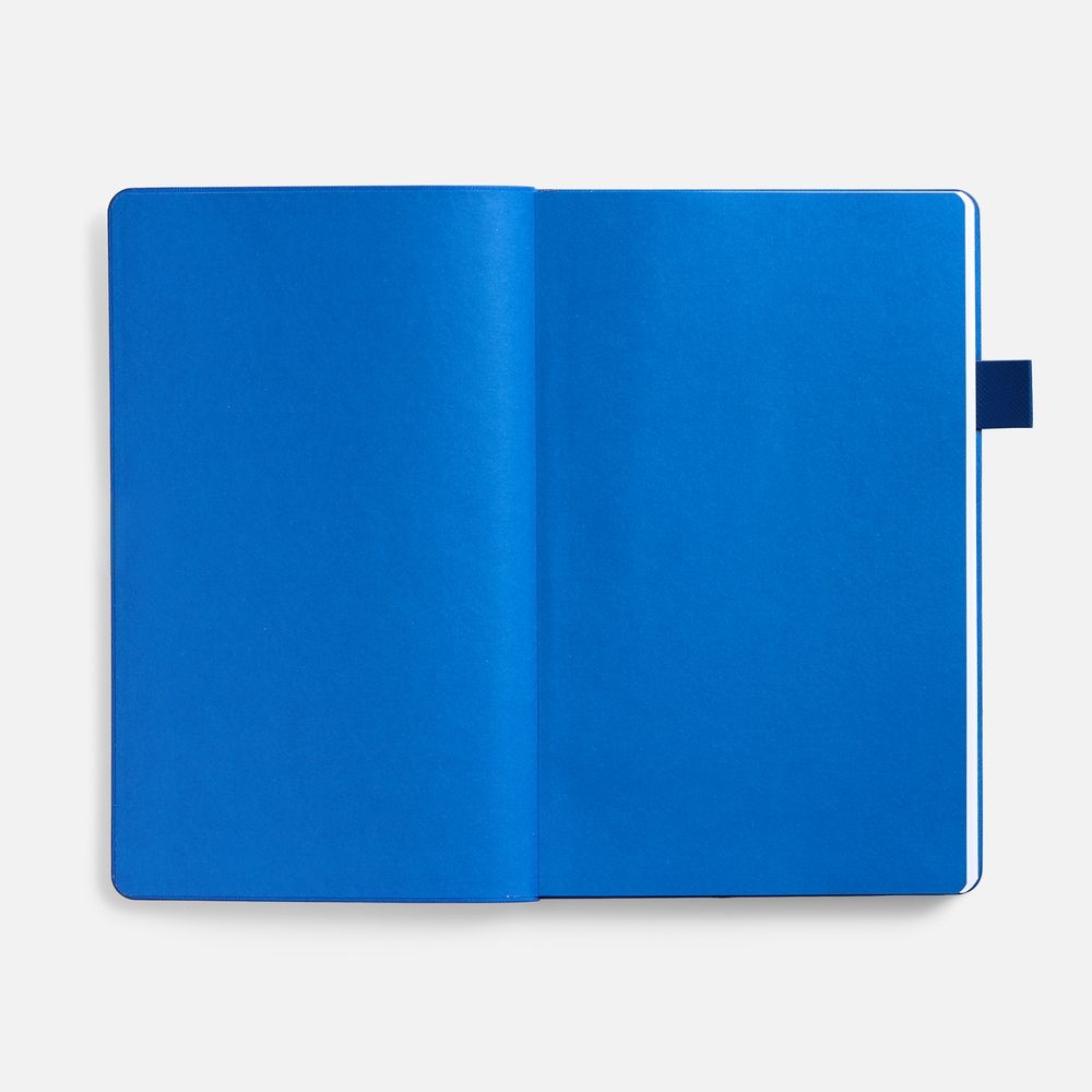Гибкая обложка, материал обложки — Soft Touch, белый BB и Latte, синий НН; материал петли для ручки — Nice Touch, синий НН. Срез обложки окрашен в синий цвет.Блок 951, без календарной сетки и информационного блока:Кол-во страниц — 256;Бумага — белая, плотность 70 г/м?;Форзац и нахзац — синего цвета.Ежедневник поставляется в термопленке