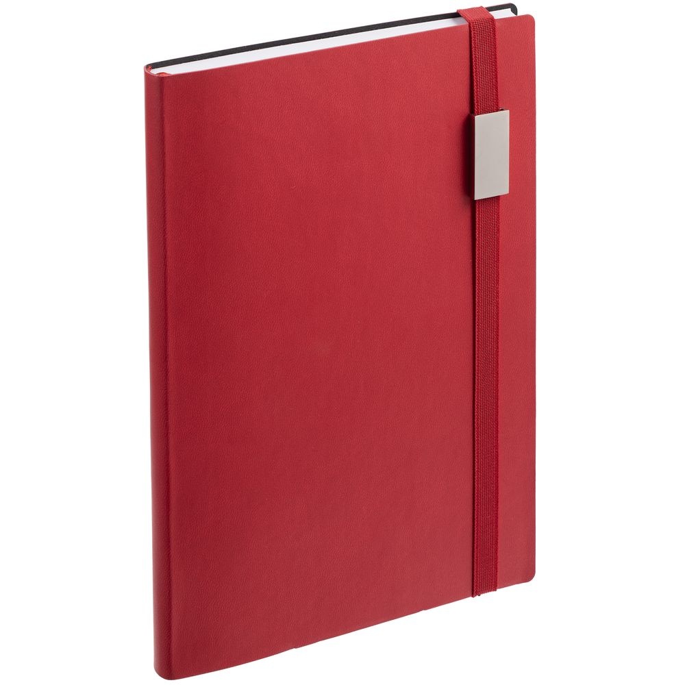 Ежедневник с гибкой обложкой, выполнен из материала Latte, красный PP, дополнен резинкой шириной 1 см с металлическим шильдом, капталом и ляссе красного цвета.Блок 922, с информационным блоком:Кол-во страниц — 336;Бумага — белая, плотность 70 г/м?;Форзац и нахзац — белого цвета.