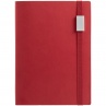 Ежедневник с гибкой обложкой, выполнен из материала Latte, красный PP, дополнен резинкой шириной 1 см с металлическим шильдом, капталом и ляссе красного цвета.
