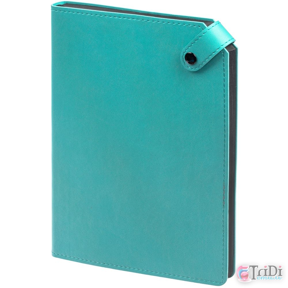 Ежедневник с гибкой обложкой и тонированным обрезом. Выполнен из материала Latte, морская волна II, дополнен черным ляссе.