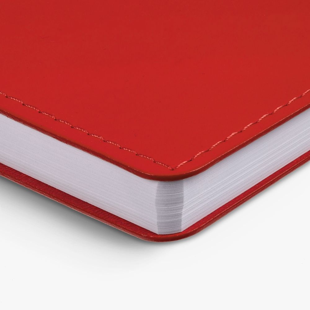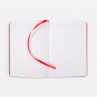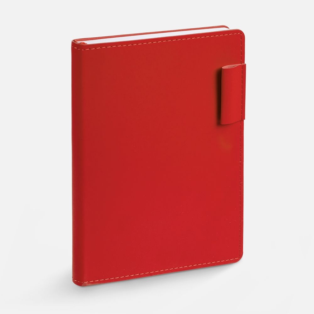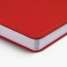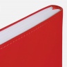 Ежедневник с гибкой обложкой из материала Soft Touch Ultra, красный РР и Latte, красный (внутренний материал), дополнен петелькой для ручки из покровного материала, капталом, ляссе и закрашенным срезом обложки в цвет материала. Блок 985, без календарной сетки и информационного блока:Кол-во страниц — 256;Бумага — белая, плотность 70 г/м?;Форзац и нахзац — белые.